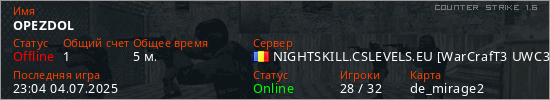 Последний раз был в сети 23:04 04.07.2025 Игрок с таким ником замечен на 6 серверах