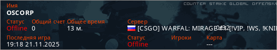 Играет на Counter Strike Global Offensive сервере. Страна: РоссияПервый раз замечен 12:13 20.11.2025