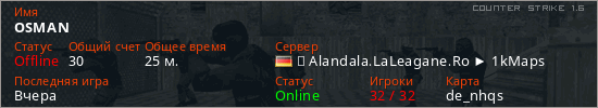 Последний раз был в сети 23 часа назад Игрок с таким ником замечен на 16 серверах