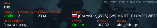 Играет на Counter Strike Global Offensive сервере. Страна: РоссияПервый раз замечен 17:05 11.03.2026
