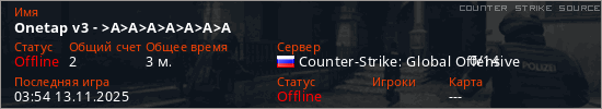 Играет на Counter Strike Source сервере. Страна: РоссияПервый раз замечен 03:54 13.11.2025