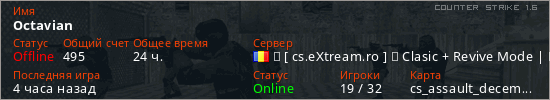 Играет на Counter Strike 1.6 сервере. Страна: РумынияПервый раз замечен 16:32 23.10.2024