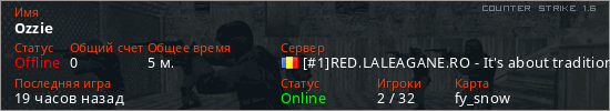 Играет на Counter Strike 1.6 сервере. Страна: РумынияПервый раз замечен 04:27 16.03.2026
