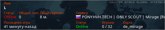 Последний раз был в сети Час назад Игрок с таким ником замечен на 64 серверах