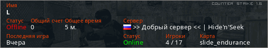 Последний раз был в сети Вчера Игрок с таким ником замечен на 58 серверах