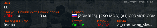 Последний раз был в сети Вчера Игрок с таким ником замечен на 24 серверах