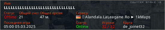 Последний раз был в сети 05:00 05.03.2025 Игрок с таким ником замечен на 5 серверах