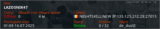 Играет на Counter Strike 1.6 сервере. Страна: РумынияПервый раз замечен 01:07 16.07.2025