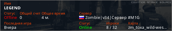 Последний раз был в сети Вчера Игрок с таким ником замечен на 31 сервере