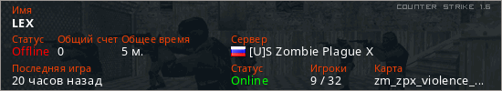 Играет на Counter Strike 1.6 сервере. Страна: РоссияПервый раз замечен 14:26 26.04.2026