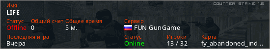 Играет на Counter Strike 1.6 сервере. Страна: РоссияПервый раз замечен 11:16 13.01.2026