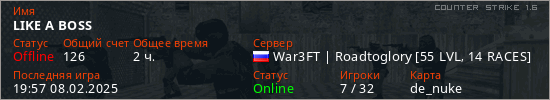 Играет на Counter Strike 1.6 сервере. Страна: РоссияПервый раз замечен 16:15 01.12.2021