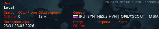 Играет на Counter Strike Global Offensive сервере. Страна: РоссияПервый раз замечен 23:09 23.03.2026