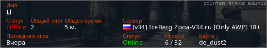 Последний раз был в сети Вчера Игрок с таким ником замечен на 5 серверах