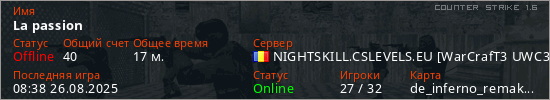 Последний раз был в сети 08:38 26.08.2025 Игрок с таким ником замечен на 3 серверах