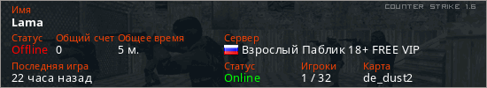 Последний раз был в сети 20 часов назад Игрок с таким ником замечен на 12 серверах