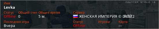 Играет на Counter Strike 1.6 сервере. Страна: РоссияПервый раз замечен 15:56 22.01.2026