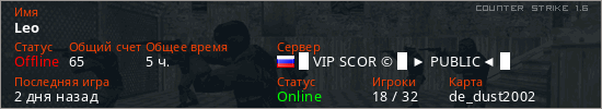 Играет на Counter Strike 1.6 сервере. Страна: РоссияПервый раз замечен 20:06 25.12.2025