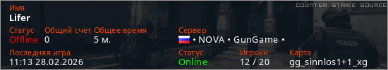 Играет на Counter Strike Source сервере. Страна: РоссияПервый раз замечен 11:11 28.02.2026