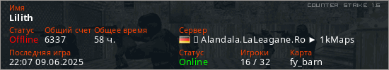 Последний раз был в сети 22:07 09.06.2025 Игрок с таким ником замечен на 18 серверах