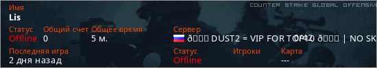 Играет на Counter Strike Global Offensive сервере. Страна: РоссияПервый раз замечен 02:37 20.01.2026