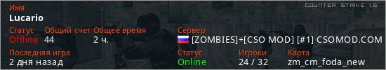Последний раз был в сети 2 дня назад Игрок с таким ником замечен на 5 серверах