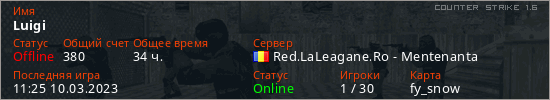 Играет на Counter Strike 1.6 сервере. Страна: РумынияПервый раз замечен 14:00 06.08.2022