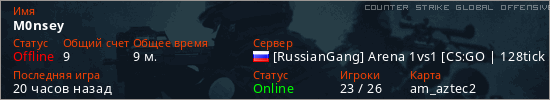 Играет на Counter Strike Global Offensive сервере. Страна: РоссияПервый раз замечен 15:43 08.03.2026