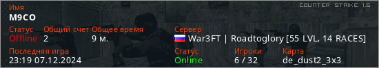 Играет на Counter Strike 1.6 сервере. Страна: РоссияПервый раз замечен 21:59 06.12.2024