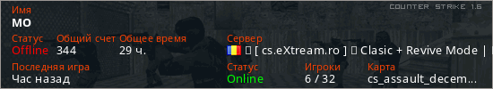 Играет на Counter Strike 1.6 сервере. Страна: РумынияПервый раз замечен 19:16 19.02.2025