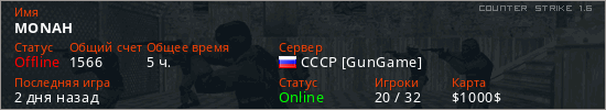 Последний раз был в сети 2 дня назад Игрок с таким ником замечен на 13 серверах