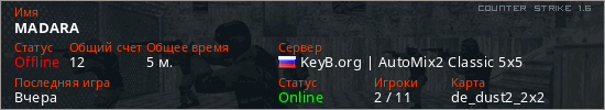 Последний раз был в сети Вчера Игрок с таким ником замечен на 42 серверах