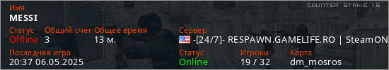 Играет на Counter Strike 1.6 сервере. Страна: СШАПервый раз замечен 18:33 06.05.2025