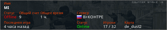 Играет на Counter Strike 1.6 сервере. Страна: РоссияПервый раз замечен 16:58 06.03.2026