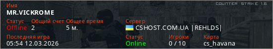 Играет на Counter Strike 1.6 сервере. Страна: УкраинаПервый раз замечен 05:50 12.03.2026