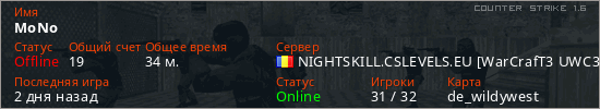 Последний раз был в сети 2 дня назад Игрок с таким ником замечен на 5 серверах
