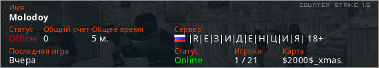 Играет на Counter Strike 1.6 сервере. Страна: РоссияПервый раз замечен 20:25 19.01.2026
