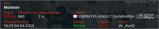 Играет на Counter Strike 1.6 сервере. Страна: ФранцияПервый раз замечен 00:38 21.03.2026