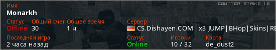 Последний раз был в сети 29 минут назад Игрок с таким ником замечен на 8 серверах
