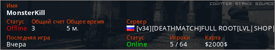 Последний раз был в сети Вчера Игрок с таким ником замечен на 6 серверах