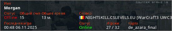 Последний раз был в сети 00:48 06.11.2025 Игрок с таким ником замечен на 26 серверах
