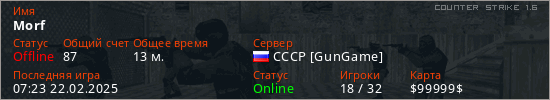 Играет на Counter Strike 1.6 сервере. Страна: РоссияПервый раз замечен 09:18 21.02.2025