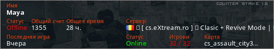 Играет на Counter Strike 1.6 сервере. Страна: РумынияПервый раз замечен 14:28 12.01.2025