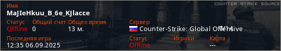 Играет на Counter Strike Source сервере. Страна: РоссияПервый раз замечен 14:10 05.09.2025