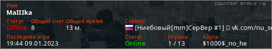 Последний раз был в сети 19:44 09.01.2023 Игрок с таким ником замечен на 2 серверах