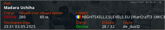 Играет на Counter Strike 1.6 сервере. Страна: РумынияПервый раз замечен 02:51 03.02.2025