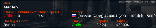 Играет на Counter Strike Source сервере. Страна: РоссияПервый раз замечен 00:09 02.12.2025
