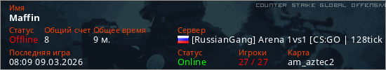 Играет на Counter Strike Global Offensive сервере. Страна: РоссияПервый раз замечен 13:29 06.03.2026