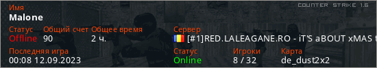 Играет на Counter Strike 1.6 сервере. Страна: РумынияПервый раз замечен 17:03 21.10.2022