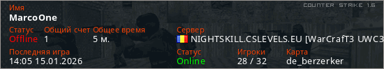 Играет на Counter Strike 1.6 сервере. Страна: РумынияПервый раз замечен 14:03 15.01.2026